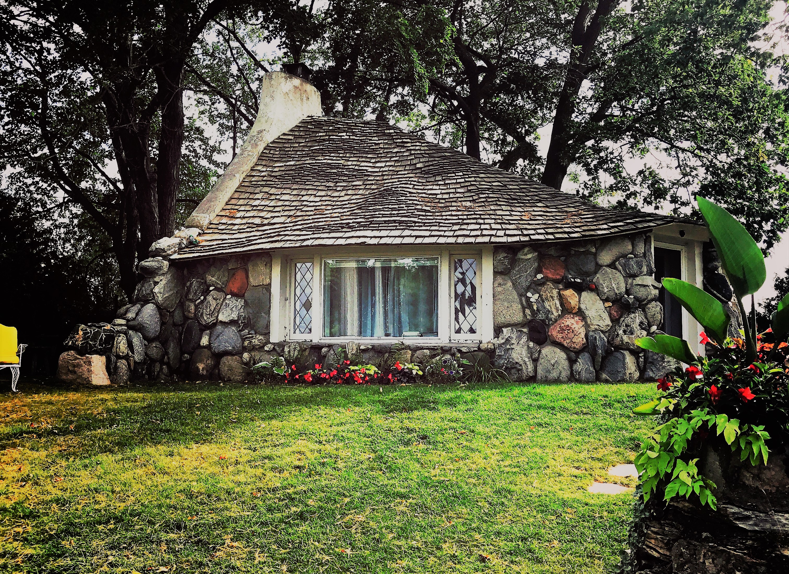 The Half-House is one of the most beloved “Mushroom Houses” and one of the most recognizable. Its beauty and intrigue has garnered it numerous awards for color placement of the stones, style and structure. This house to me….represents everything Earl Young was trying to portray in his work and has all the attributes of the signature “Mushroom House” look.